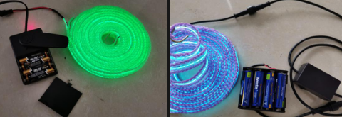 Usage method:Open the packaging bag (do not damage) ?install the battery ?wrap the luminous belt between the pillars,